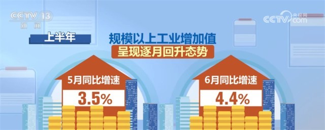 數(shù)據(jù)二:增長(zhǎng)3.8%。工業(yè)和信息化部7月19日介紹,隨著3月份以來(lái)一批穩(wěn)經(jīng)濟(jì)政策效果持續(xù)顯現(xiàn),今年上半年,我國(guó)規(guī)模以上工業(yè)增加值同比增長(zhǎng)3.8%,工業(yè)經(jīng)濟(jì)恢復(fù)向好。其中,5月、6月當(dāng)月同比增速分別為3.5%、4.4%,呈現(xiàn)逐月回升態(tài)勢(shì)。工業(yè)投資保持?jǐn)U張,上半年同比增長(zhǎng)8.9%,增速較一季度加快0.3個(gè)百分點(diǎn)。