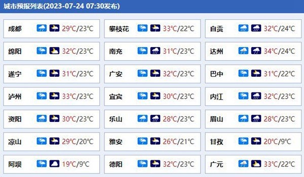 四川各城市預報。(來源:中國天氣網(wǎng))