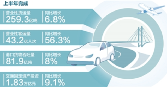 完成營業(yè)性貨運量259.3億噸,同比增長6.8%;完成交通固定資產(chǎn)投資1.83萬億元,繼續(xù)保持高位運行……7月31日,交通運輸部發(fā)布數(shù)據(jù)顯示,上半年,交通運輸經(jīng)濟運行穩(wěn)中向好,既有量的合理增長,也有質(zhì)的有效提升。