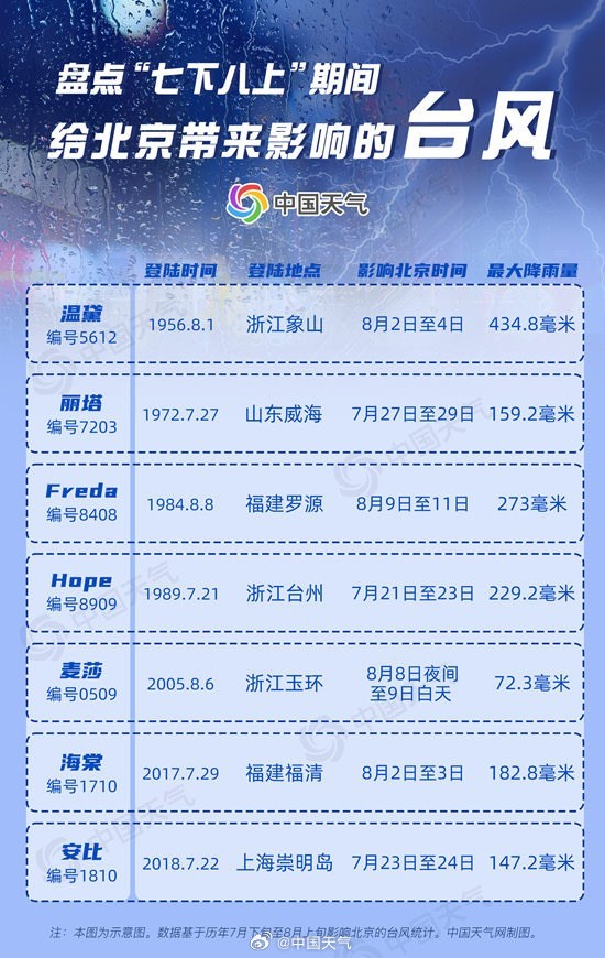 本次極端降水過(guò)程中,臺(tái)風(fēng)“杜蘇芮”的殘余環(huán)流北上是其中一個(gè)重要的原因。歷史上北京也曾多次受到臺(tái)風(fēng)及其減弱后的低壓影響,出現(xiàn)較強(qiáng)降雨。例如2017年第10號(hào)臺(tái)風(fēng)“海棠”和2018年第10號(hào)臺(tái)風(fēng)“安比”給北京帶來(lái)的最大降雨量都超過(guò)了100毫米,更早的1956年第12號(hào)臺(tái)風(fēng)“溫黛”導(dǎo)致的最大降雨量更是超過(guò)400毫米。