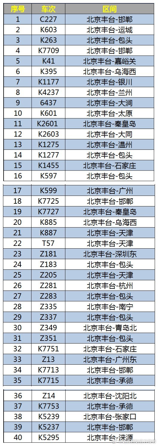 4日北京西站、北京豐臺(tái)站部分列車停運(yùn),車次查詢