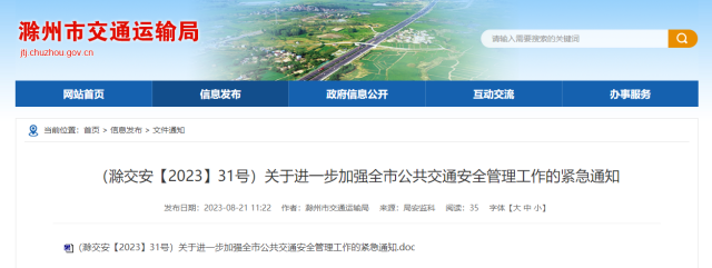 8月20日中午,來安城鄉(xiāng)公交有限公司一輛公交車在南京林場附近突然起火,造成2人死亡、5人受傷。為深刻吸取事故教訓(xùn),確保公共交通安全,切實(shí)保障人民群眾生命財(cái)產(chǎn)安全,現(xiàn)就加強(qiáng)全市公共交通安全管理工作緊急通知如下: