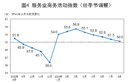 8月份,非制造業(yè)商務活動指數為51.0%,比上月下降0.5個百分點,仍高于臨界點,非制造業(yè)持續(xù)擴張。