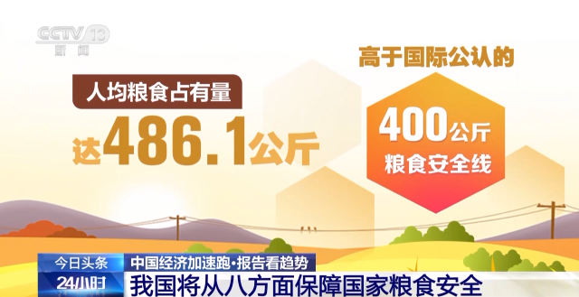 報(bào)告提出,將從加強(qiáng)糧食安全保障體系和能力建設(shè)、大力落實(shí)藏糧于地、積極推進(jìn)藏糧于技、加大農(nóng)業(yè)保護(hù)支持力度、切實(shí)提升糧食調(diào)控能力、加快構(gòu)建現(xiàn)代糧食產(chǎn)業(yè)和流通體系、不斷提高多元食物供給能力、深入開(kāi)展糧食節(jié)約減損行動(dòng)等8方面,保障國(guó)家糧食安全。