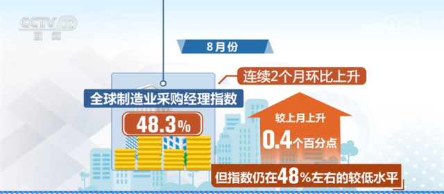8月份全球制造業(yè)采購經(jīng)理指數(shù)為48.3%,較上月上升0.4個百分點,連續(xù)2個月環(huán)比上升,但指數(shù)仍在48%左右的較低水平,全球經(jīng)濟呈弱勢修復態(tài)勢,總體趨緊的大環(huán)境沒有改變,需求收縮壓力仍然存在。