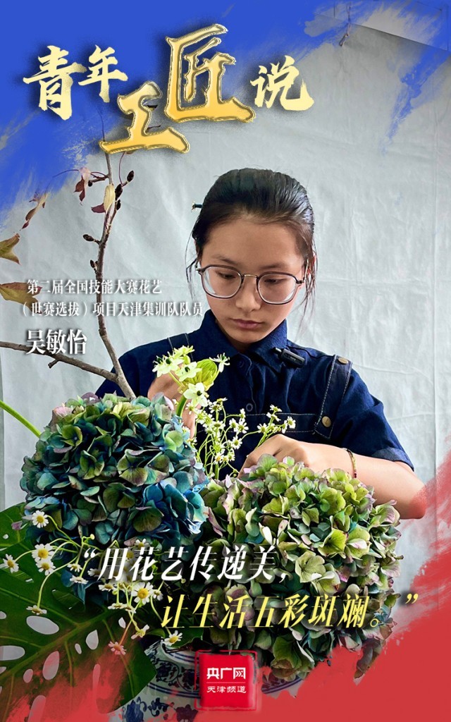 青春,是以工匠精神筑就美好生活的底色。走進(jìn)位于天津農(nóng)學(xué)院花藝(世賽選拔)項(xiàng)目的集訓(xùn)現(xiàn)場,生機(jī)盎然、芬芳馥郁,天津集訓(xùn)隊(duì)隊(duì)員吳敏怡正在挑選花材和花器,為每一件作品賦予一番獨(dú)特的意境。從2023年5月以來,吳敏怡每天要與花相伴12個(gè)小時(shí),在審美及技術(shù)水平上的提高也讓她很有成就感。對于本次比賽,她也充滿期待:“我的目標(biāo)是起碼能拿一個(gè)優(yōu)勝獎(jiǎng),也是為了突破自己,讓自己的花藝技術(shù)更上一層樓。”她說,她也將用花藝傳遞生活中的美,讓生活五彩斑斕。