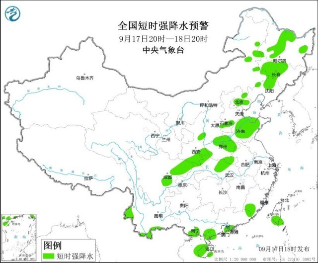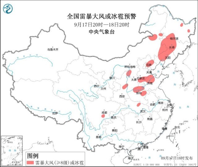中央氣象臺(tái)9月17日18時(shí)繼續(xù)發(fā)布強(qiáng)對流天氣藍(lán)色預(yù)警