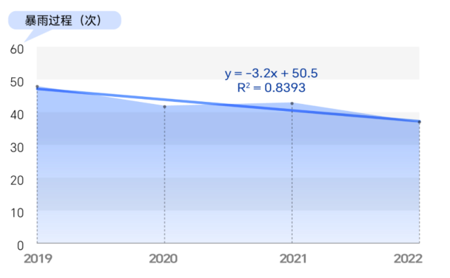 2019年至2022年全國(guó)暴雨發(fā)生次數(shù)變化趨勢(shì)(單位:次)