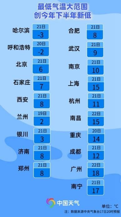 冷空氣影響ing 中東部大部最低氣溫將創(chuàng)新低