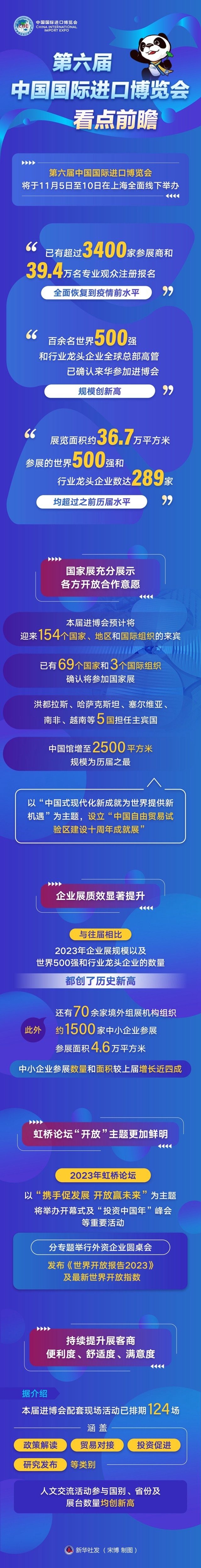 “已有超過(guò)3400家參展商和39.4萬(wàn)名專(zhuān)業(yè)觀眾注冊(cè)報(bào)名,全面恢復(fù)到疫情前水平”“百余名世界500強(qiáng)和行業(yè)龍頭企業(yè)全球總部高管已確認(rèn)來(lái)華參加進(jìn)博會(huì),規(guī)模創(chuàng)新高”“展覽面積約36.7萬(wàn)平方米,參展的世界500強(qiáng)和行業(yè)龍頭企業(yè)數(shù)達(dá)289家,均超過(guò)之前歷屆水平”……