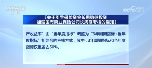 《通知》明確,為引導(dǎo)國有商業(yè)保險公司長期穩(wěn)健經(jīng)營,更好發(fā)揮中長期資金的市場穩(wěn)定器和經(jīng)濟(jì)發(fā)展助推器作用,加強(qiáng)對國有商業(yè)保險公司的長周期考核,根據(jù)《財政部關(guān)于印發(fā)<商業(yè)保險公司績效評價辦法>的通知》,將經(jīng)營效益指標(biāo)的“凈資產(chǎn)收益率”由“當(dāng)年度指標(biāo)”調(diào)整為“3年周期指標(biāo)+當(dāng)年度指標(biāo)”相結(jié)合的考核方式,其中,3年周期指標(biāo)和當(dāng)年度指標(biāo)權(quán)重各占50%。