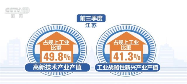 江蘇省今年以來不斷壯大先進制造業(yè)規(guī)模,前三季度,江蘇省高新技術(shù)產(chǎn)業(yè)、工業(yè)戰(zhàn)略性新興產(chǎn)業(yè)產(chǎn)值占規(guī)上工業(yè)比重分別為49.8%、41.3%,比上半年均有提升。前三季度,新能源汽車、充電樁產(chǎn)量分別增長80.2%和1.1倍。