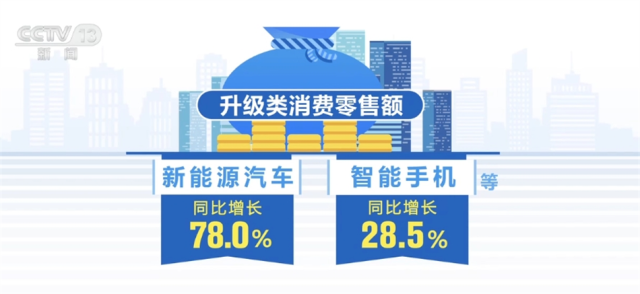 中部地區(qū)里,湖北、安徽前三季度GDP增速都超過了6%,湖北前三季度社會消費品零售總額同比增長8.5%,其中,新能源汽車、智能手機等升級類消費零售額同比分別增長78.0%和28.5%。