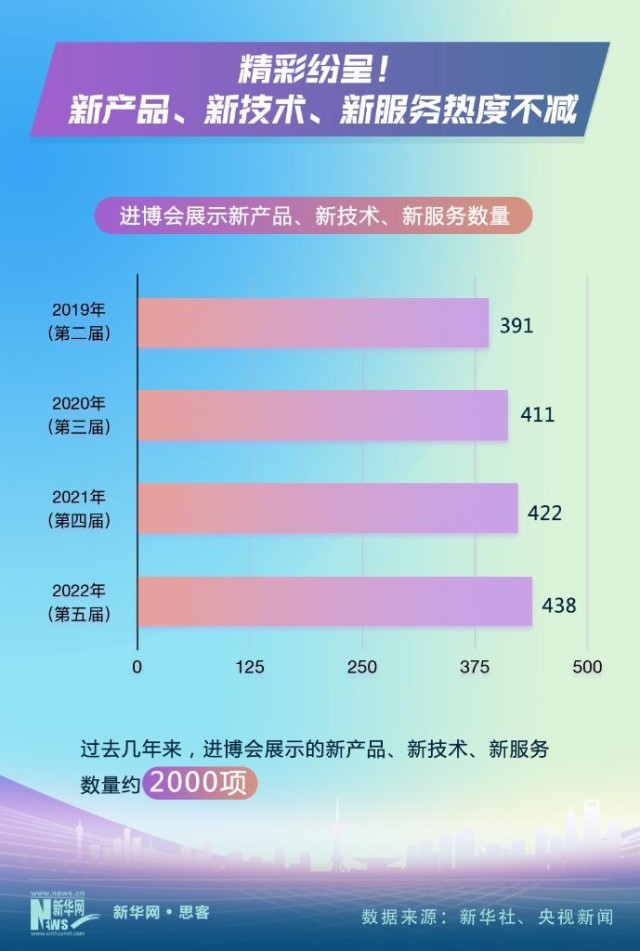 每年進(jìn)博會(huì),各種新產(chǎn)品、新技術(shù)、新服務(wù)的亮相總能吸引參會(huì)者的眼球。數(shù)據(jù)顯示,過去幾年來,進(jìn)博會(huì)展示的新產(chǎn)品、新技術(shù)、新服務(wù)數(shù)量約2000項(xiàng),歷屆的數(shù)量呈逐年遞增的態(tài)勢(shì)。另一方面,參展產(chǎn)品、技術(shù)、服務(wù)不斷迭代升級(jí),多種先進(jìn)醫(yī)療器械、創(chuàng)新藥、能源低碳設(shè)備、智能工業(yè)裝備、新能源汽車、高科技美妝產(chǎn)品、高品質(zhì)食品等也在本屆進(jìn)博會(huì)上進(jìn)行全球首發(fā)、亞洲首秀、中國(guó)首展。
