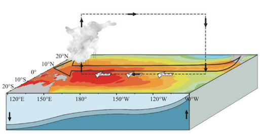 正常情況下,赤道西太平洋是大片的暖水區(qū),其面積相當于我國陸地面積的兩倍多,而東太平洋是一片冷水區(qū)。但在一些年份,原本堆積在西太平洋的暖海水會往東蔓延,使得赤道中東太平洋海溫持續(xù)異常升高;而另一些年份,赤道中東太平洋冷水區(qū)范圍擴大,海水變得更冷。當赤道中東太平洋海溫出現(xiàn)這種異?,F(xiàn)象,就有可能發(fā)生厄爾尼諾或拉尼娜。