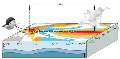 熱帶太平洋海洋大氣狀態(tài)示意圖(暖色系代表海溫偏暖,冷色系代表海溫偏冷,顏色越深,偏暖/冷的程度越大,圖片引自《中國氣候》,氣象出版社)