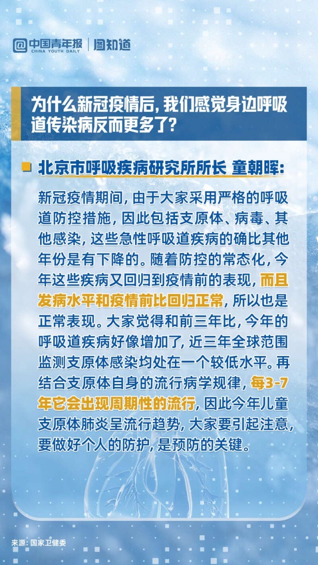 肺炎支原體感染和普通流感有什么區(qū)別?今年肺炎支原體感染有何特點(diǎn)?為什么新冠疫情后,我們感覺身邊呼吸道傳染病反而更多了?目前我國新冠形勢(shì)究竟如何?時(shí)值冬季,新冠病毒是否會(huì)出現(xiàn)再次變異?多重病毒疊加混合感染后如何治療?今天下午,國家衛(wèi)健委就冬季呼吸道疾病防治有關(guān)情況回答了熱點(diǎn)提問。