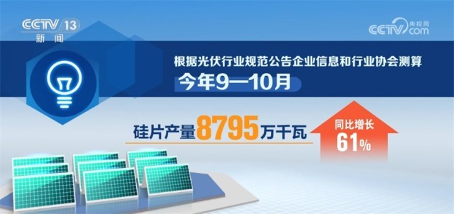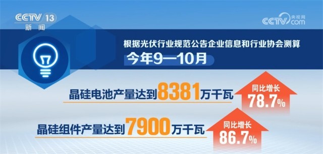 央視網(wǎng)消息:工業(yè)和信息化部昨天(12月13日)發(fā)布當(dāng)前全國(guó)光伏制造行業(yè)最新運(yùn)行情況。數(shù)據(jù)顯示,今年9—10月,我國(guó)光伏制造業(yè)保持高位運(yùn)行,硅料、硅片、電池、組件產(chǎn)量同比增長(zhǎng)均超60%。