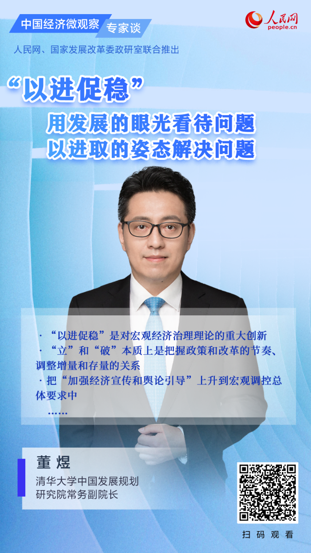 日前,清華大學(xué)中國發(fā)展規(guī)劃研究院常務(wù)副院長(zhǎng)董煜做客《中國經(jīng)濟(jì)微觀察·專家談》欄目時(shí)表示,“以進(jìn)促穩(wěn)”是對(duì)宏觀經(jīng)濟(jì)治理理論的重大創(chuàng)新,提出了進(jìn)和穩(wěn)之間基于動(dòng)態(tài)平衡的更高水平要求。他認(rèn)為這是一種新的穩(wěn)定觀,即以發(fā)展眼光看待問題,并以積極進(jìn)取的姿態(tài)解決面臨的安全和穩(wěn)定問題。實(shí)現(xiàn)“以進(jìn)促穩(wěn)”的目標(biāo),要通過結(jié)構(gòu)、質(zhì)量、效益、改革的“進(jìn)”來創(chuàng)造穩(wěn)定發(fā)展的環(huán)境。