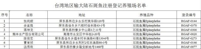 各海關(guān)自2023年12月22日起恢復(fù)受理臺灣地區(qū)石斑魚報關(guān),并依法依規(guī)實施檢驗檢疫。同時,請及時將上述情況通知轄區(qū)內(nèi)相關(guān)企業(yè)。