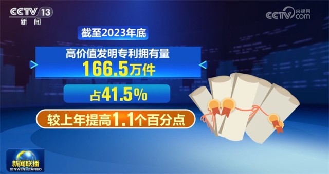 國(guó)務(wù)院新聞辦公室1月16日舉行新聞發(fā)布會(huì),國(guó)家知識(shí)產(chǎn)權(quán)局相關(guān)負(fù)責(zé)人介紹,截至2023年底,我國(guó)國(guó)內(nèi)(不含港澳臺(tái))發(fā)明專(zhuān)利有效量為401.5萬(wàn)件,同比增長(zhǎng)22.4%,首次超過(guò)400萬(wàn)件。其中,高價(jià)值發(fā)明專(zhuān)利擁有量166.5萬(wàn)件,占41.5%,較上年提高1.1個(gè)百分點(diǎn)。國(guó)內(nèi)企業(yè)擁有有效發(fā)明專(zhuān)利290.9萬(wàn)件,占比增至71.2%,首次超過(guò)七成,創(chuàng)新主體地位進(jìn)一步凸顯。