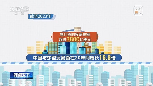 截至2023年,中國與東盟貿(mào)易額在20年間增長16.8倍,累計雙向投資總額超過3800億美元。
