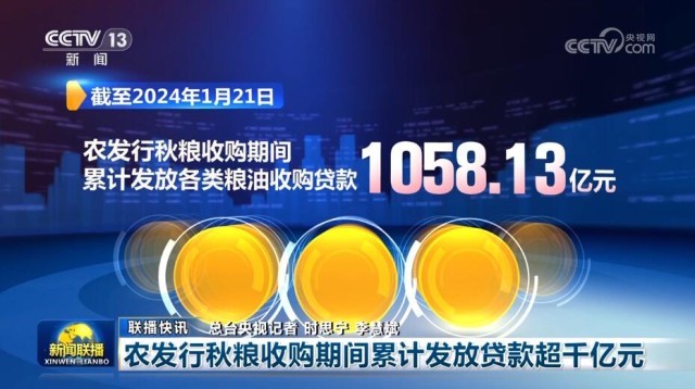 截至2024年1月21日,農(nóng)發(fā)行秋糧收購期間累計發(fā)放各類糧油收購貸款1058.13億元,其中主要發(fā)放中晚稻收購貸款448.63億元、玉米收購貸款395.96億元、大豆收購貸款57.79億元,有效維護(hù)了糧食市場穩(wěn)定。
