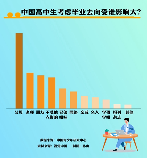 孫宏艷:首先,學(xué)校是職業(yè)生涯規(guī)劃教育的主要部門,學(xué)校把職業(yè)生涯規(guī)劃教育搞好了,學(xué)生能對自己和職業(yè)有準(zhǔn)確的認知和定位,他們自然會選擇合適的職業(yè)和工作地。從這次的調(diào)查數(shù)據(jù)看,中國高中生已比過去更理性了,就業(yè)地首選已從北上廣這樣的國際大城市到所在地中心城市了。未來,隨著我國鄉(xiāng)村振興等政策的推進和城市的發(fā)展,青年也許會更愿意到所在地縣鎮(zhèn)村等基層去工作。這不僅依賴于政策和城市的發(fā)展,更依賴于青年對自我和職業(yè)的準(zhǔn)確定位。