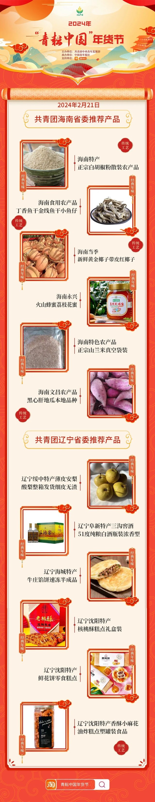 2024年“青耘中國”年貨節(jié)將于1月31日至2月24日,開展“一日兩省”主題日活動(dòng)。用戶可在淘寶APP搜索“青耘中國年貨節(jié)”進(jìn)入專題頁選購產(chǎn)品。