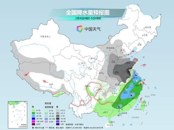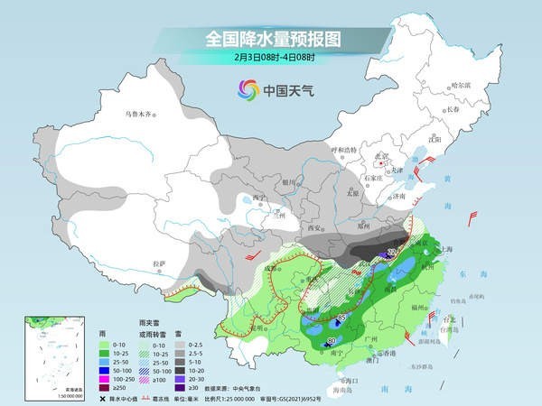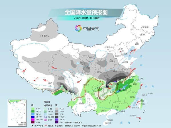 未來三天(2月2日至4日),中東部大范圍雨雪冰凍天氣過程進(jìn)入鼎盛時段,江漢至黃淮一帶將遭遇強(qiáng)降雪,局地或現(xiàn)大暴雪,江南、華南局地有暴雨,并可能出現(xiàn)強(qiáng)對流天氣。在冷空氣和雨雪天氣共同影響下,中東部多地濕冷感明顯。春運高峰期將至,公眾需注意出行安全,做好防寒保暖措施。