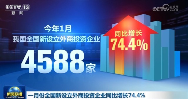 今年1月,我國全國新設(shè)立外商投資企業(yè)4588家,同比增長74.4%。制造業(yè)實(shí)際使用外資金額增長20.5%,其中高技術(shù)制造業(yè)實(shí)際使用外資增長40.6%。