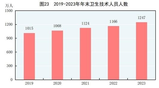 年末全國共有醫(yī)療衛(wèi)生機構(gòu)107.1萬個,其中醫(yī)院3.9萬個,在醫(yī)院中有公立醫(yī)院1.2萬個,民營醫(yī)院2.7萬個;基層醫(yī)療衛(wèi)生機構(gòu)101.6萬個,其中鄉(xiāng)鎮(zhèn)衛(wèi)生院3.4萬個,社區(qū)衛(wèi)生服務(wù)中心(站)3.7萬個,門診部(所)36.2萬個,村衛(wèi)生室58.3萬個;專業(yè)公共衛(wèi)生機構(gòu)1.2萬個,其中疾病預(yù)防控制中心3426個,衛(wèi)生監(jiān)督所(中心)2791個。衛(wèi)生技術(shù)人員1247萬人,其中執(zhí)業(yè)醫(yī)師和執(zhí)業(yè)助理醫(yī)師478萬人,注冊護士563萬人。醫(yī)療衛(wèi)生機構(gòu)床位1020萬張,其中醫(yī)院800萬張,鄉(xiāng)鎮(zhèn)衛(wèi)生院151萬張。全年總診療人次95.6億人次,出院人次3.0億人次。