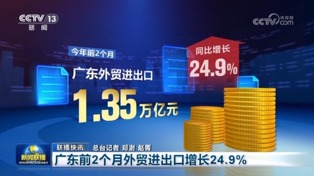今年前兩個(gè)月,廣東外貿(mào)進(jìn)出口1.35萬億元,同比增長24.9%。其中,出口8859.4億元,增長26.8%;進(jìn)口4624億元,增長21.5%。其中,民營企業(yè)占比提升,前兩個(gè)月,廣東民營企業(yè)進(jìn)出口占廣東進(jìn)出口總值的63.8%。