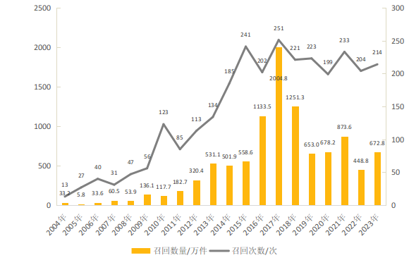 市場監(jiān)管總局:2023年我國共實施汽車召回214次 同比增長4.9%