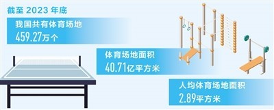 截至2023年底我國共有體育場地459.27萬個 人均面積2.89平方米