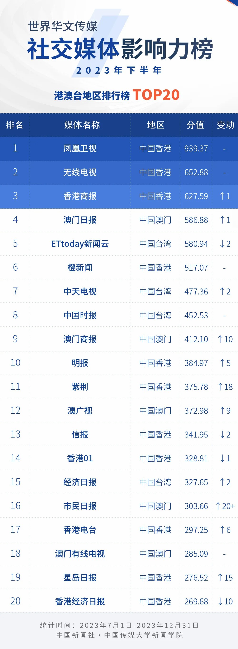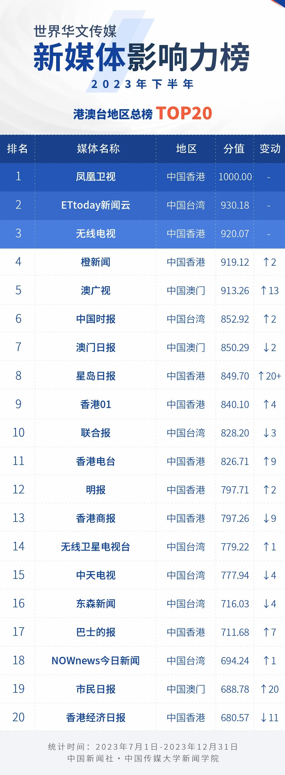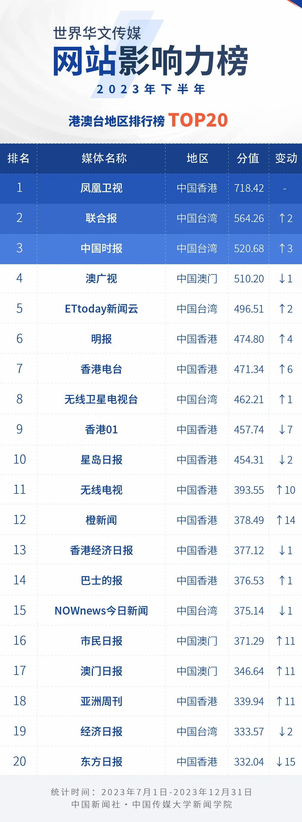 中國新聞社與中國傳媒大學新聞學院持續(xù)開展“世界華文傳媒新媒體影響力”測評項目,現(xiàn)根據(jù)2023年下半年世界華文傳媒新媒體的業(yè)務數(shù)據(jù),發(fā)布2023年下半年榜。