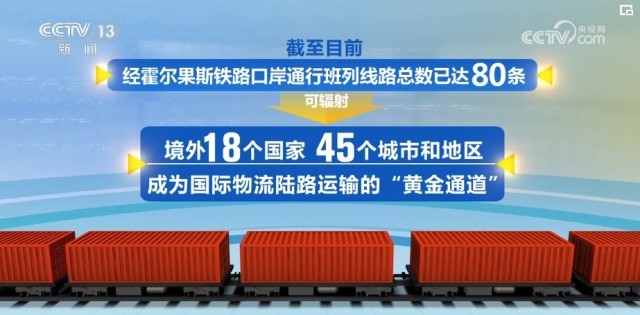 自2016年開出首趟中歐班列以來(lái),經(jīng)霍爾果斯海關(guān)監(jiān)管的中歐(中亞)班列總量已超過(guò)3.5萬(wàn)列。截至目前,經(jīng)霍爾果斯鐵路口岸通行班列線路總數(shù)已達(dá)80條,可輻射境外18個(gè)國(guó)家、45個(gè)城市和地區(qū),成為國(guó)際物流陸路運(yùn)輸?shù)摹包S金通道”。