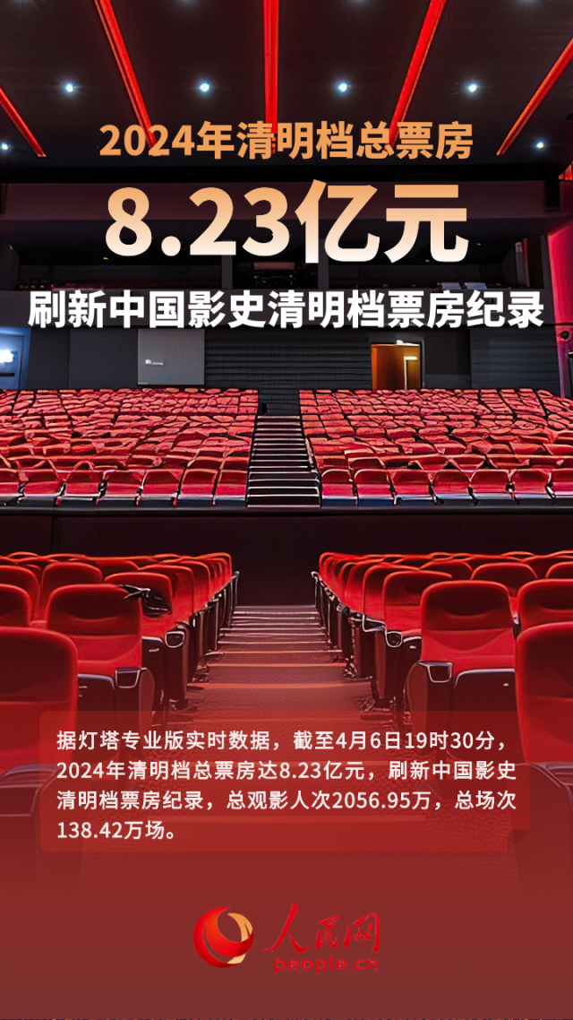 據(jù)燈塔專(zhuān)業(yè)版實(shí)時(shí)數(shù)據(jù),截至4月6日19時(shí)30分,2024年清明檔總票房達(dá)8.23億元,刷新中國(guó)影史清明檔票房紀(jì)錄,總觀影人次2056.95萬(wàn),總場(chǎng)次138.42萬(wàn)場(chǎng)。