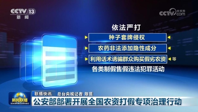 近日,公安部會(huì)同有關(guān)部門部署開展全國(guó)農(nóng)資打假專項(xiàng)治理行動(dòng),依法嚴(yán)打種子套牌侵權(quán)、農(nóng)藥非法添加隱性成分、利用話術(shù)誘騙群眾購(gòu)買假劣農(nóng)資等各類制假售假違法犯罪活動(dòng),切實(shí)維護(hù)農(nóng)民群眾合法權(quán)益。