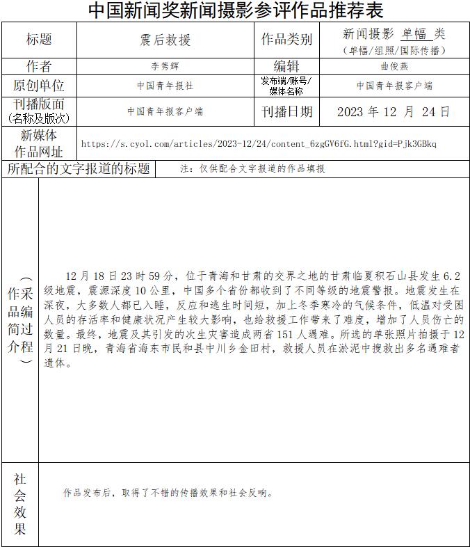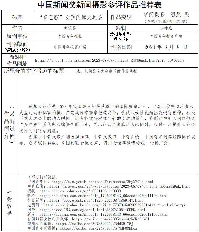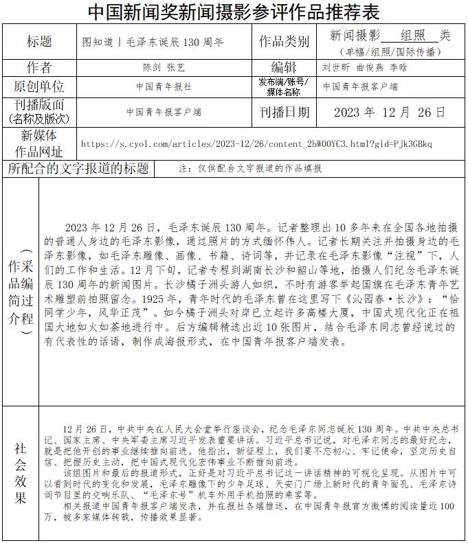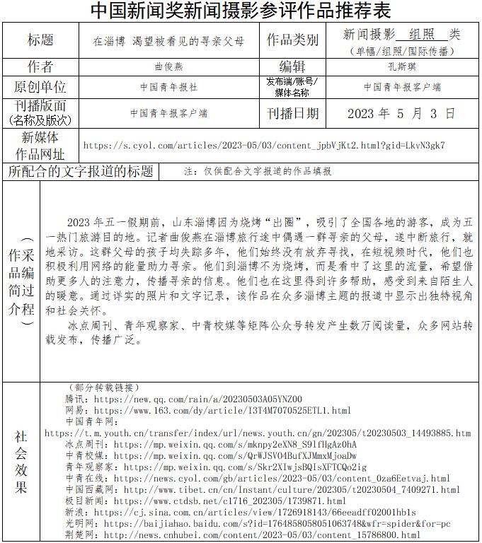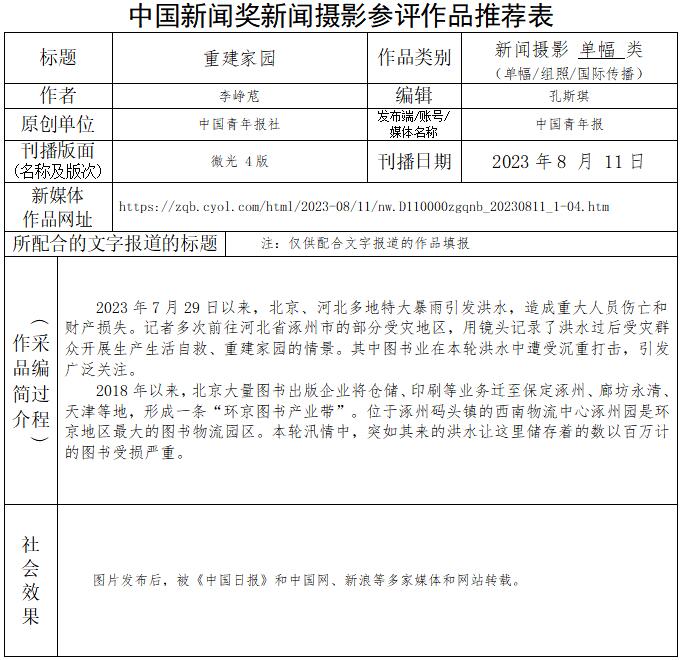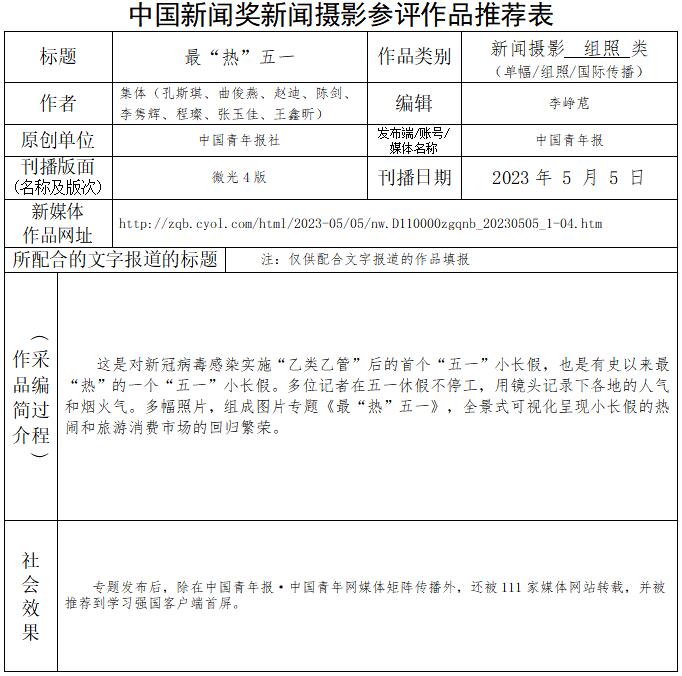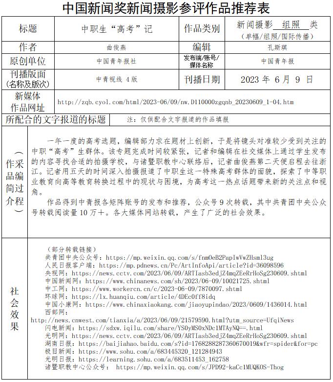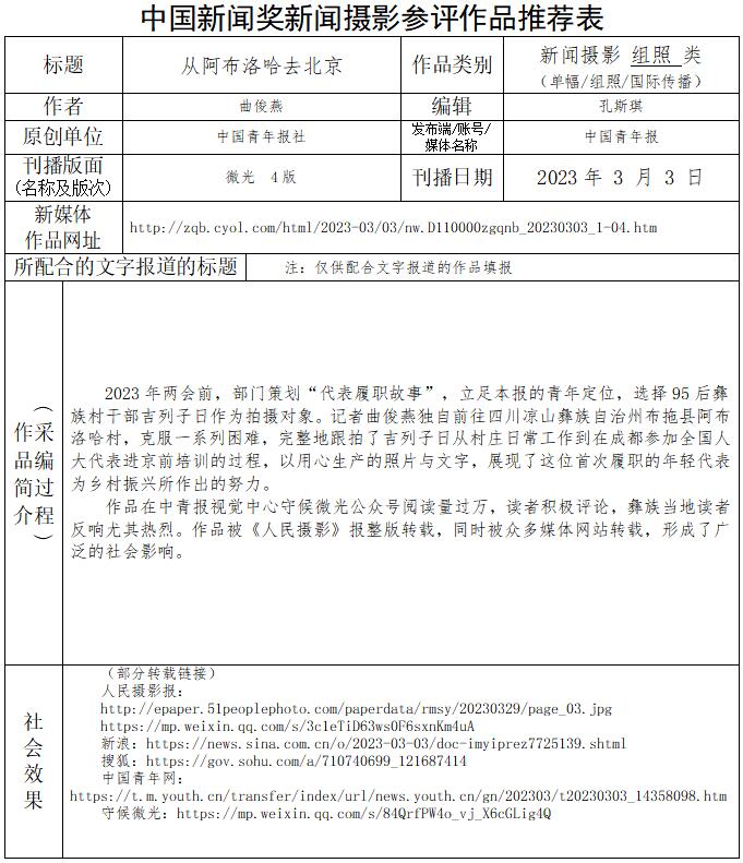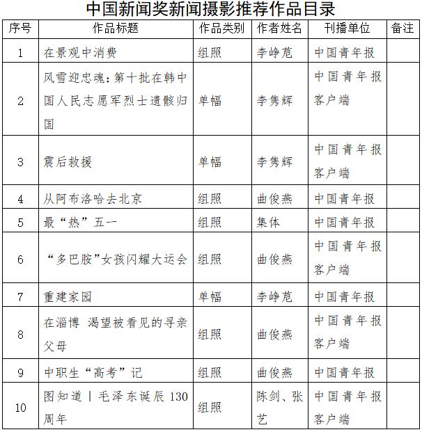 中國(guó)青年報(bào)社推薦參評(píng)第34屆中國(guó)新聞獎(jiǎng)新聞攝影作品專(zhuān)項(xiàng)初評(píng)公示
