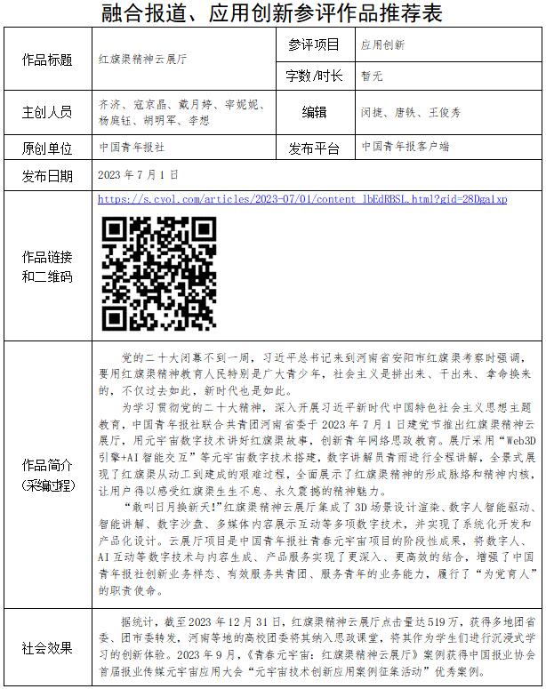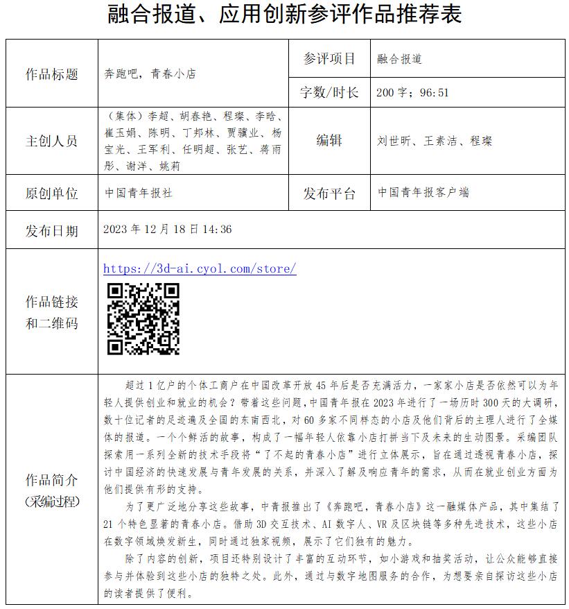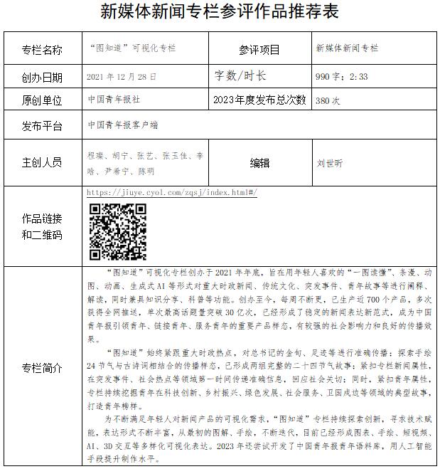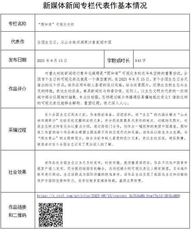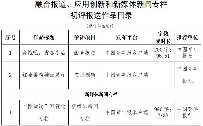 中國(guó)青年報(bào)社推薦參評(píng)第34屆中國(guó)新聞獎(jiǎng)融合報(bào)道、應(yīng)用創(chuàng)新和新媒體新聞專欄作品專項(xiàng)初評(píng)公示