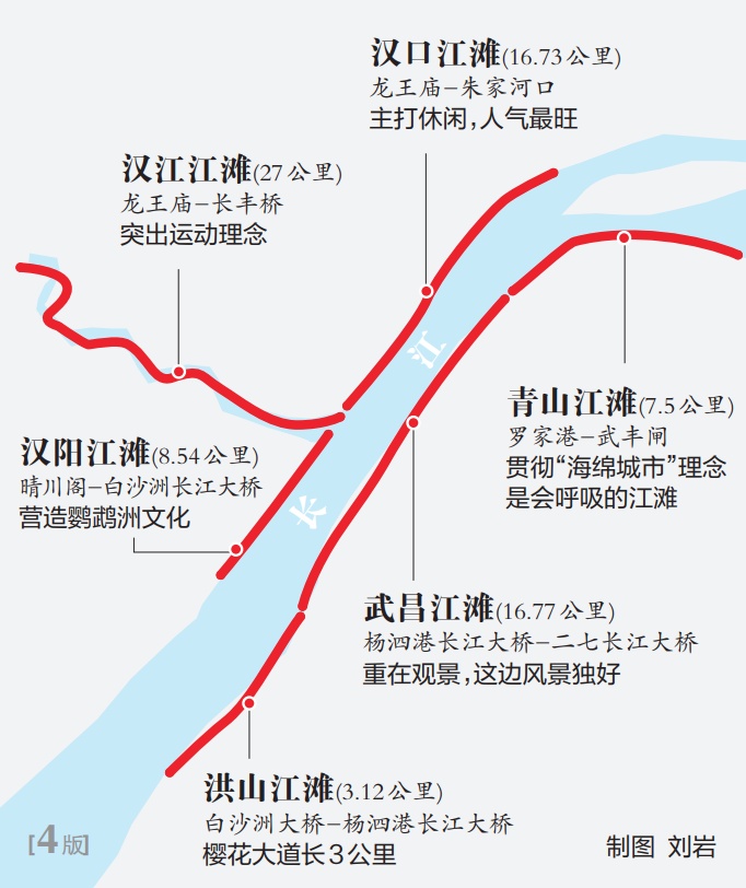 洪山江灘建成后,中心城區(qū)江灘串成景