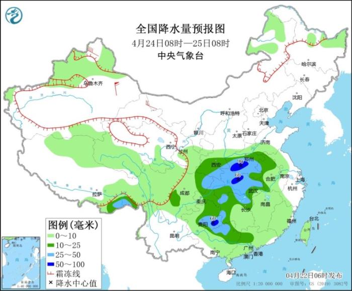 圖1 全國降水量預報圖(4月22日08時-23日08時)