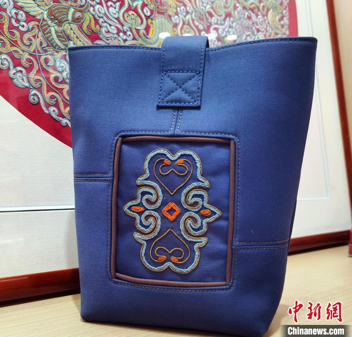 記者發(fā)現(xiàn),許多產品隨著馬尾繡的加入非但不突兀,反而有一種恰到好處的感覺,比如西裝布料的手腕包,加入馬尾繡工藝后不僅時尚百搭,還顯得華麗精致。此外,色彩斑斕的馬尾繡與銀飾結合制成現(xiàn)代化飾品,古樸厚重卻不失時尚之韻。