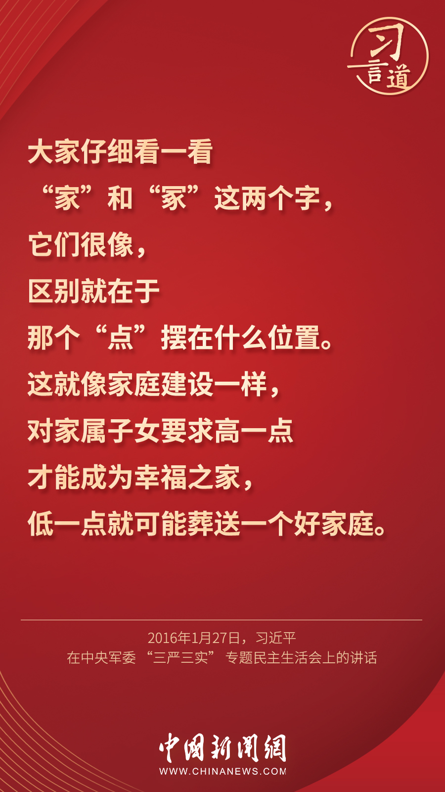 “家庭不只是人們身體的住處,更是人們心靈的歸宿?!苯陙?,習近平總書記發(fā)表過諸多關于重視親情、營造良好家風的重要論述,他指出——