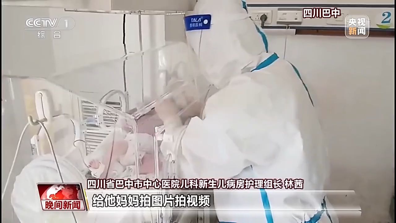 四川省巴中市中心醫(yī)院兒科新生兒病房護理組長 林茜:給他媽媽拍圖片拍視頻,(以)第一人稱的方式給他媽媽寫信。媽媽,媽媽,我是濤濤,今天我吃了50毫升奶,睡得非常香,請你不要擔心我,媽媽你也要加油。