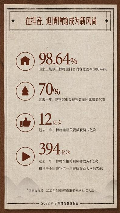 報告顯示:全國三級以上博物館抖音內(nèi)容覆蓋率達98.64%