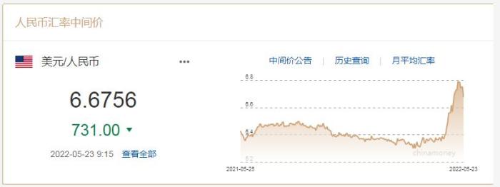 中新財(cái)經(jīng)5月23日電(記者 李金磊) 中國人民銀行授權(quán)中國外匯交易中心公布,2022年5月23日銀行間外匯市場人民幣匯率中間價(jià)為:1美元對人民幣6.6756元。這較上一交易日大幅調(diào)升731個(gè)基點(diǎn)。此外,在岸人民幣、離岸人民幣對美元匯率也已升回6.6元時(shí)代。(完)