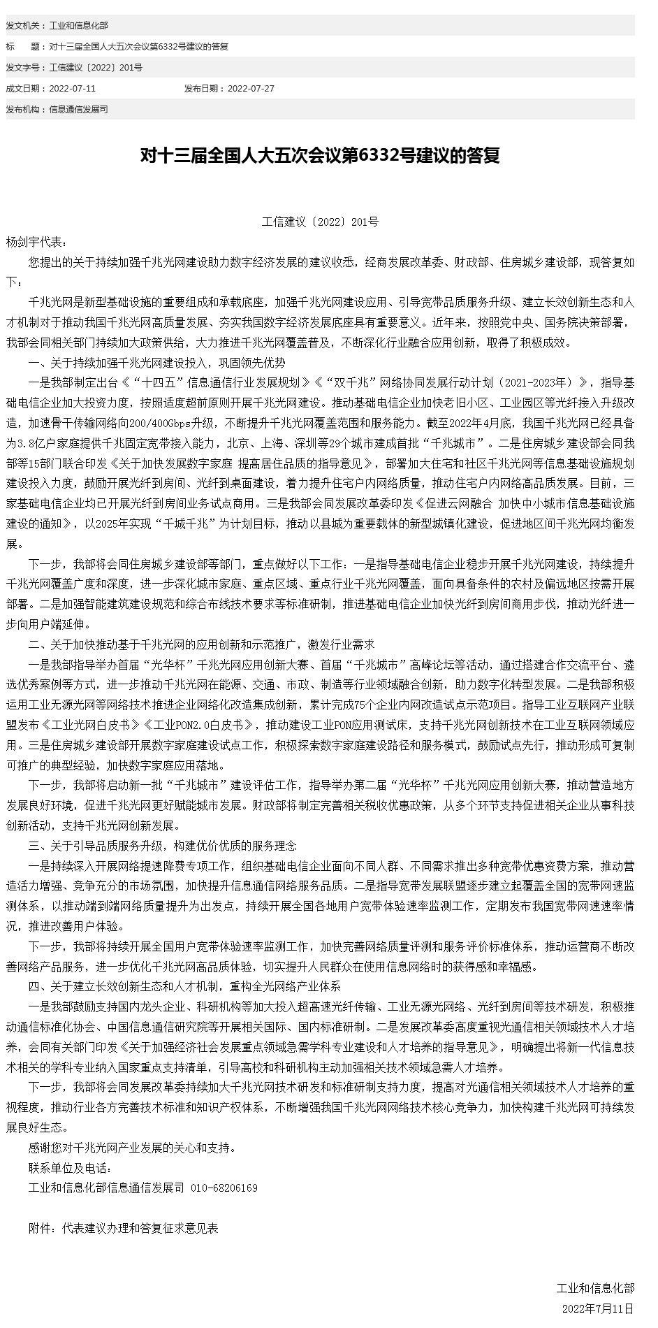 中新網(wǎng)7月27日電 工信部網(wǎng)站27日發(fā)布對十三屆全國人大五次會議第6332號建議的答復(fù)。工信部表示,將指導(dǎo)基礎(chǔ)電信企業(yè)穩(wěn)步開展千兆光網(wǎng)建設(shè),持續(xù)提升千兆光網(wǎng)覆蓋廣度和深度,進(jìn)一步深化城市家庭、重點(diǎn)區(qū)域、重點(diǎn)行業(yè)千兆光網(wǎng)覆蓋,面向具備條件的農(nóng)村及偏遠(yuǎn)地區(qū)按需開展部署。加強(qiáng)智能建筑建設(shè)規(guī)范和綜合布線技術(shù)要求等標(biāo)準(zhǔn)研制,推進(jìn)基礎(chǔ)電信企業(yè)加快光纖到房間商用步伐,推動光纖進(jìn)一步向用戶端延伸。(中新財(cái)經(jīng))