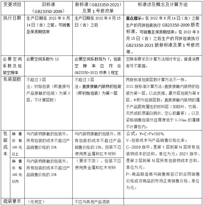 中消協(xié)也呼吁社會各界對照下表中包裝層數(shù)、包裝成本、混裝要求等三項內(nèi)容,對市場上銷售的月餅產(chǎn)品進行監(jiān)督。同時監(jiān)督要依法客觀公正,不得損害經(jīng)營者的商業(yè)信譽等合法權(quán)益。